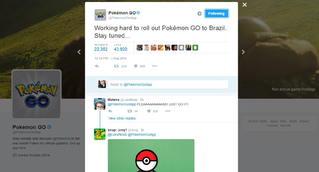 Ainda nesta quarta, a empresa de desenvolvimento de software conhecida por jogos de realidade aumentada, Niantic publicou em sua conta do Twitter que estava "trabalhando duro" para que o game fosse lançado no Brasil. Acabou o desespero!