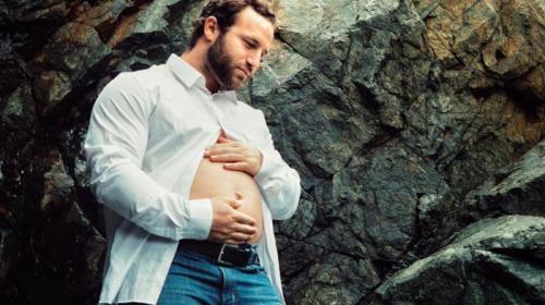 um ensaio de ‘grávido’ e apresentou as fotos aos convidados no chá de
